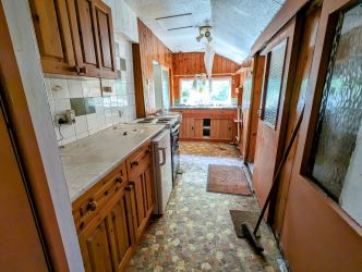 The gardens are of reasonable size and very overgrown. Behind the cottage is a covered pathed area attached to which is a timber out shed with a corrugated roof.