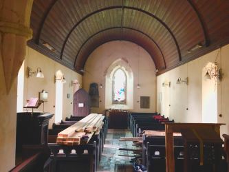 The interior of the church is of a traditional pattern and retains a wealth of features including fine stain glassed windows, a nave and elevated chancel. It is understood that it is not the original church on this site however as the original building dating from the middle-ages was destroyed by fire in approximately 1865 and rebuilt as it is seen today.
